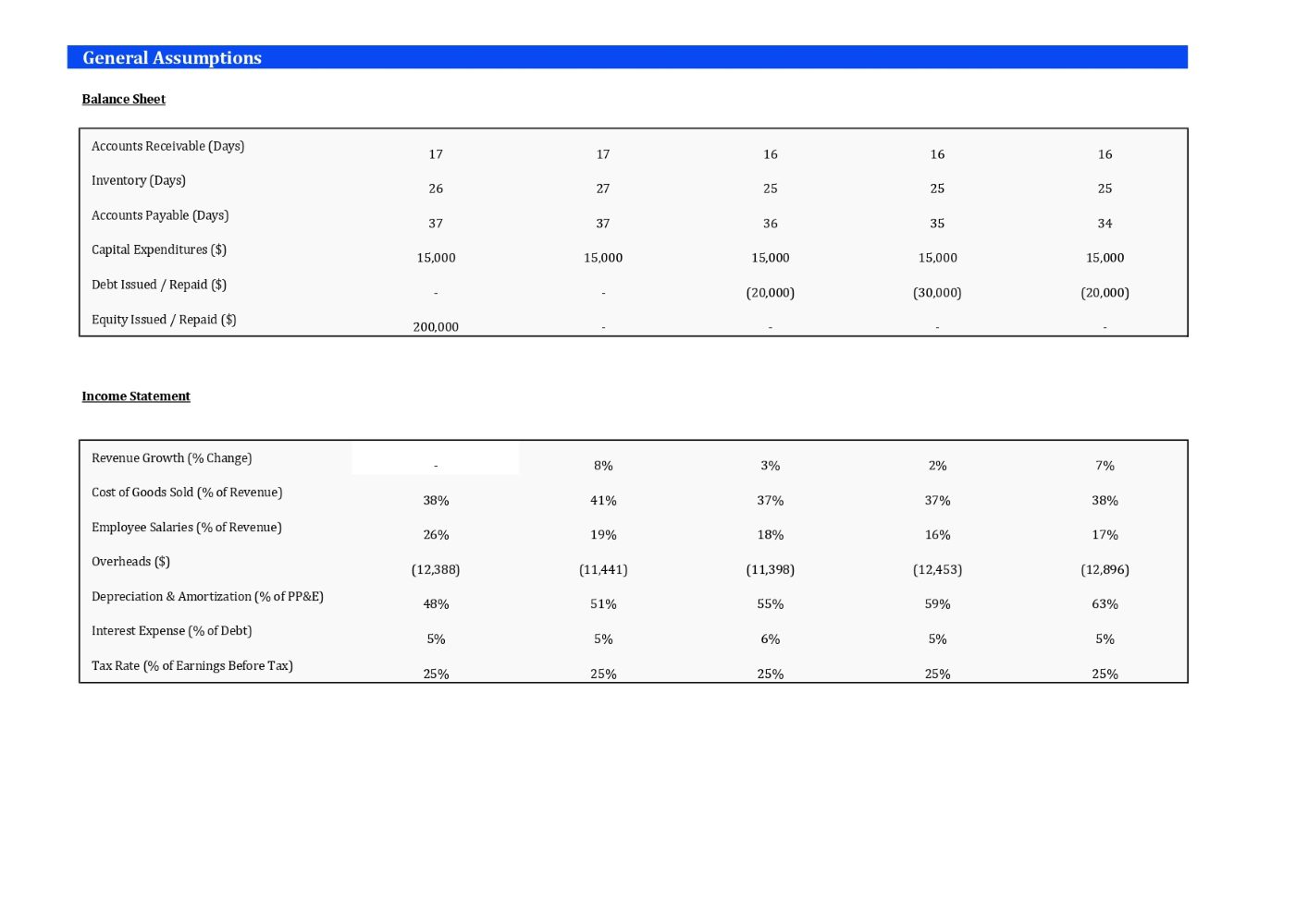Learn key formulas, valuation techniques, assumptions, historical data, projections and dashboard summaries